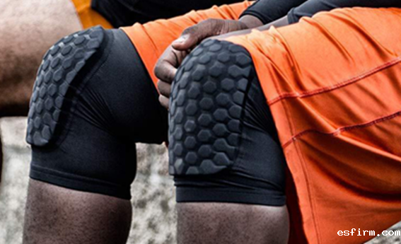 抗冲击防护型护膝产品主要通过在护膝中加入海绵、聚氨酯等填充材料实现良好的抗冲击性能和缓冲效果。但是护膝过厚可能会造成运动不便,影响运动效果。目前护膝产品的开发主要通过在膝关节部位填充物质来实现。如知名护具品牌McDavid(迈克达威)的抗冲击型护膝,原料使用锦纶/氨纶,采用独特的HEX蜂窝防撞技术,膝盖部位采用由闭孔状的聚乙烯泡沫衬垫构成的六边形蜂窝防撞垫,贴合人体膝关节生理曲线,有利于吸收和分散冲击力。