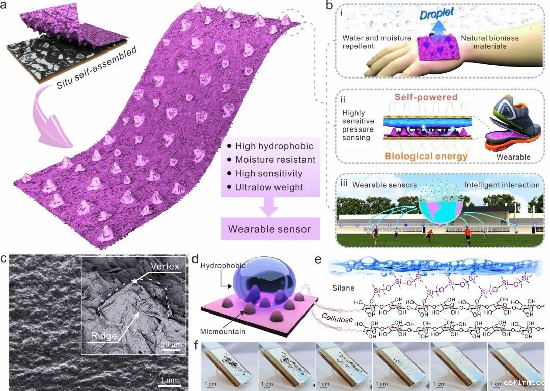 相关成果以“Nanocellulosic triboelectric materials with micro-mountain arrays for moisture-resisting wearable sensors”为题发表在《Nano Energy》上。