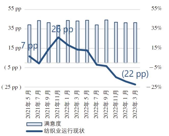 根据国际纺织制造商联合会(ITMF)发布的第19次调查报告,自2022年 6 月以来,全球纺织业运行持续承压,表现不佳,且仍未见好转态势。全球纺织企业都面临着高生产成本和较低需求的双重压力。与此同时,自2022年11月以来,企业对未来 6 个月行业发展的预期持续转好。目前尚不明确预期转好是由于企业认为未来情况不会比现在更糟糕,还是具有充分依据的经济正常化预期。