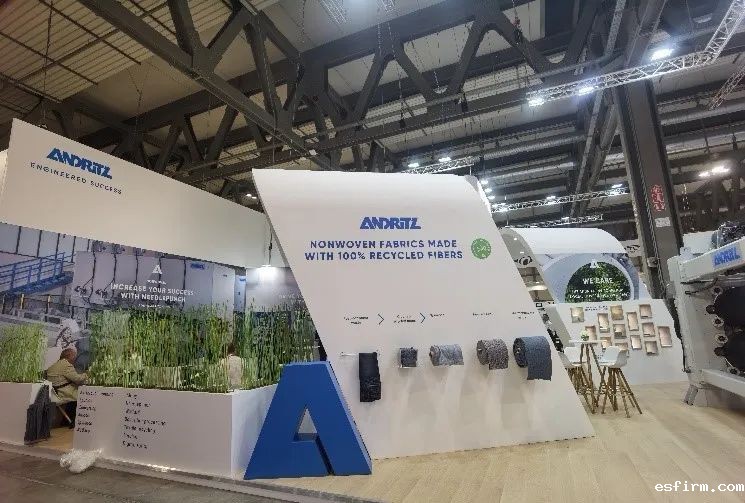 国际技术集团ANDRITZ(安德里茨)在本次展会上展示其创新的非织造布生产和纺织品回收解决方案。旗下的非织造产品系列涵盖了先进的非织造布及制品生产技术,如热风黏合、针刺、水刺、纺粘、湿法成网、WetlaceTM、纺织后整理、气流成网和天然纤维加工。在纺织品回收领域,安德里茨可提供纤维制备、机械/化学回收以及组合的完整生产线,也可提供设备中的单独部件。