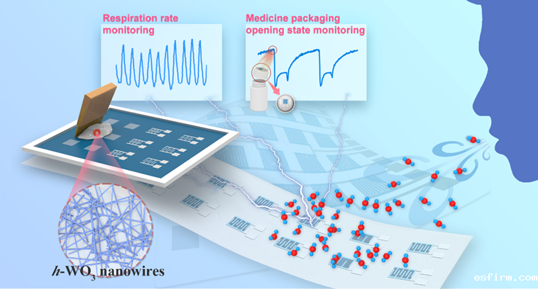 近日,武汉大学吴伟教授课题组在《Advanced Materials》上发表文章“All-printed, Fast Response Flexible Humidity Sensor Based on Hexagonal-WO3 Nanowires for Multifunctional Applications”,报道了一种通过丝网印刷技术制备的基于六方相氧化钨纳米线的柔性湿度传感器,该传感器具有宽响应范围、高灵敏度、快速响应的特点,能实现快速、批量化制备,可用于人体呼吸频率监测、非接触式传感以及包装开启状态检测。