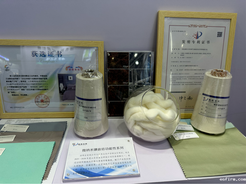抑菌防螨系列纱线非常契合当下母婴童装领域的健康需求。常见的抑菌纤维包括麻纤维、竹原纤维、PHBV纤维等。除抑菌纤维的应用,棉纺企业也加大技术创新,如江苏悦达集团采用“悦聚纺”技术,通过在梳棉工序引入静电纺功能性亚微米纤维,成功纺制了一系列亚微米纤维/棉复合纱线。魏桥纺织研发了功能性微纳米镶嵌纺纱线,用梳棉/静电纺丝一体机实现棉纤维与功能性微纳米纤维的镶嵌,为跨尺度纤维集合体的结构设计和高效制备及多重复合功能性产品开发提供了新的思路和解决办法。