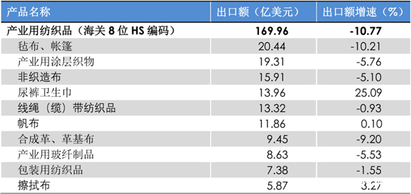 2023年1-5月产业用纺织品行业及主要产品出口情况
