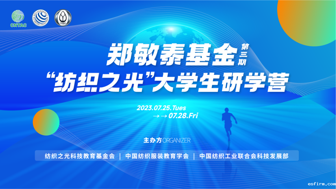 郑敏泰基金第三期“纺织之光”大学生研学营由纺织之光科技教育基金会、中国纺织服装教育学会、伟德app官方正版下载地址科技发展部主办,获得了纺织之光科技教育基金会郑敏泰专项基金的经费支持,以及佛山维彩纺织有限公司、中联品检(福建)检测服务有限公司捐赠物资,同时获得了中国纺织规划研究会、中国流行色协会、江苏富之岛美安纺织品科技有限公司、江苏大生集团有限公司的大力支持。