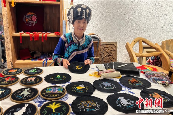 彝族刺绣省级非物质文化遗产传承人游定美。 陈文韬 摄