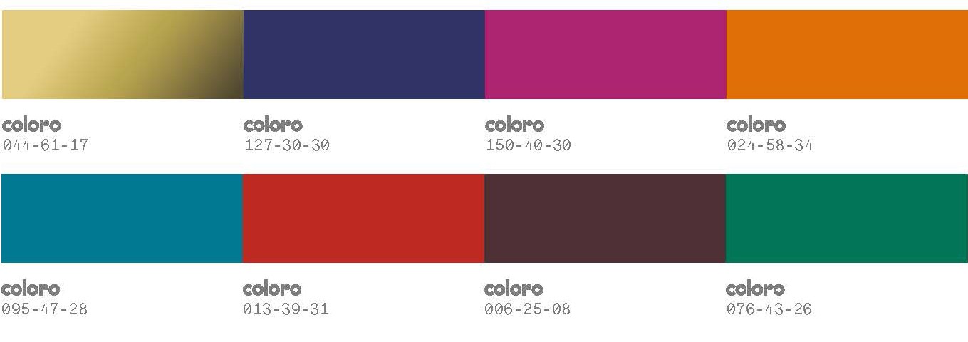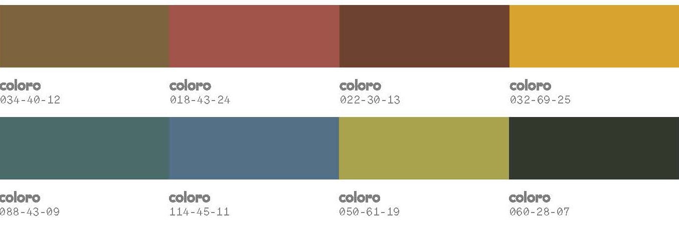 色彩:自然赋色浓郁丰盈,温暖蔓生。深邃色调如深黛绿更新冬日暗色,潮汐深绿碰撞杨桃青黄与橡树棕,仿若大地深处。炽热的红与棕交织温柔的合欢红,充盈着硬朗与柔美的澎湃能量。