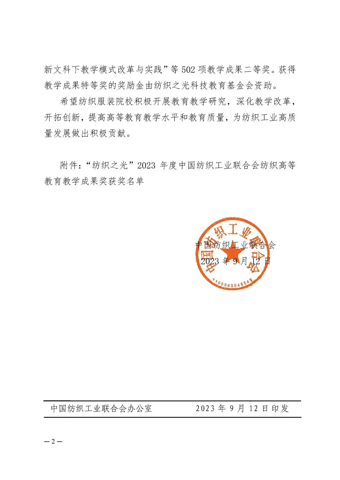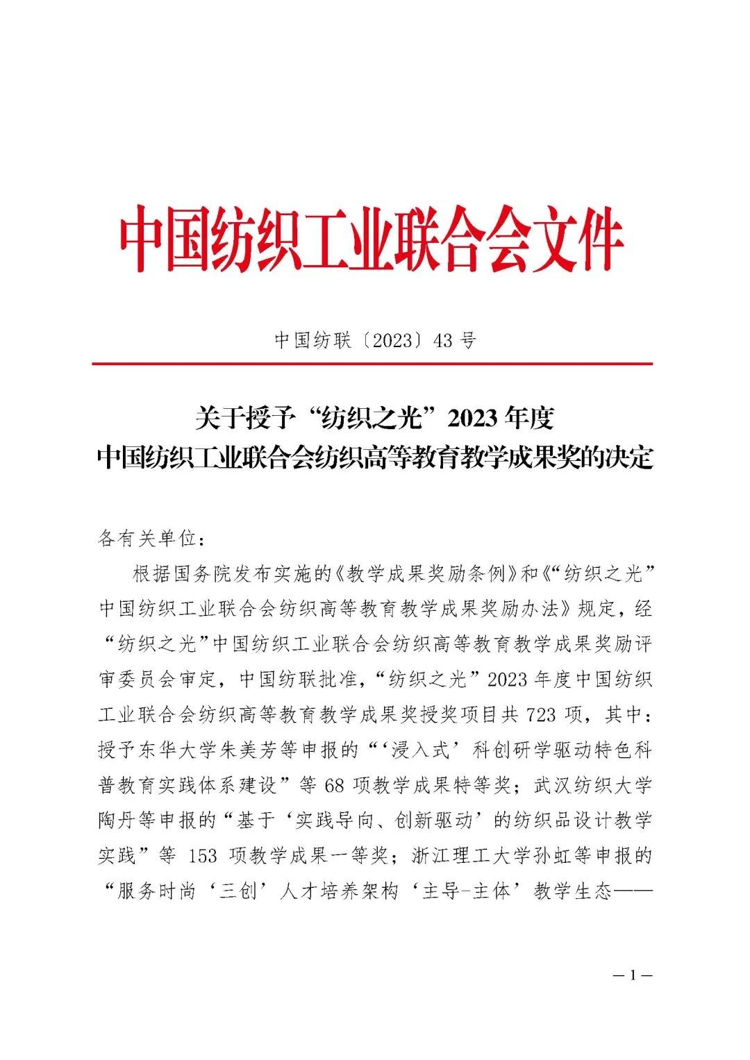 附件:“纺织之光”2023年度伟德app官方正版下载地址纺织高等教育教学成果奖获奖名单