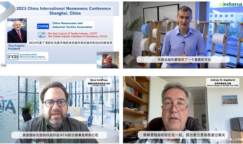 美国非织造布协会会长Tony Fragnito、欧洲非织造布协会总经理Murat Dogru、美国国际先进纺织品协会总裁兼首席执行官Steve Schiffman、全球纤维年鉴总裁Andreas W. Engelhardt分别发表视频致辞,对会议的成功召开表示祝贺。同时,他们还表示,当前行业发展正面临全球需求放缓等诸多挑战,希望全球同行能聚力合作,共渡难关。此次会议为全行业讨论业务解决方案、建立联系以及围绕技术创新等开展头脑风暴,提供了一个重要的平台,对推动行业高质量发展具有重要意义。