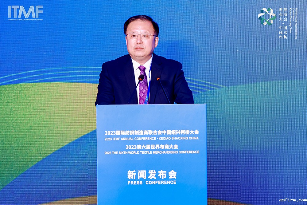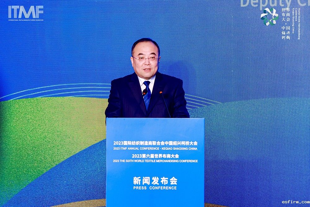 “绍兴有开放的基因,也有开放的舞台。”王涛在致辞中介绍道,改革开放以来,绍兴先后经历了五次纺织革命,形成了“产业+市场+城市”联动发展的独特优势,创造了“纺织产业链最完整、纺织产能最大、专业市场最大”等多个“全国之最”。今年,绍兴的“柯桥纺织”区域品牌价值达2912.36亿元,成为中国纺织行业首个价值千亿级区域品牌。绍兴紧扣世界级现代纺织产业集群建设目标,主动拥抱纺织行业发展新趋势,全面实施印染集聚升级工程,推动纺织印染产业数字化、高端化、低碳化发展,加速构筑起开放协同、集群联动的大纺织经济格局。