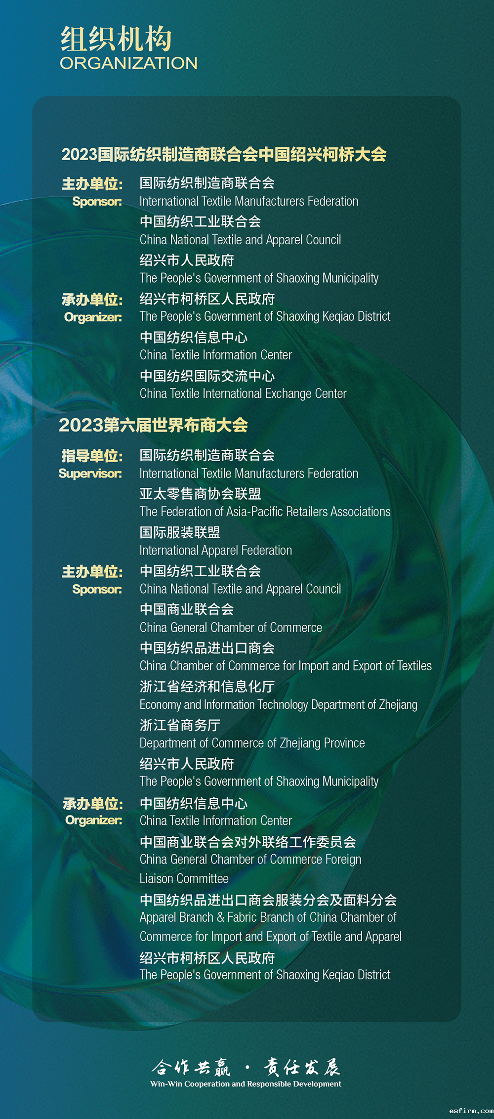 近五年来,世界布商大会在高质量共建“一带一路”伟大倡议下,致力构筑“责任发展,合作共赢”的全球纺织产业共同体,构建了“共商、共建、共享”的世界纺织开放新格局。五年间,布商大会在积厚成势之中见证了中国纺织的精彩蝶变,也见证了“中国发展,世界机遇”在柯桥的生动诠释。2023国际纺织制造商联合会中国绍兴柯桥大会/2023第六届世界布商大会在柯桥的举办,相信将进一步深化推动全球纺织行业的共赢发展,开创产业更可持续的未来。