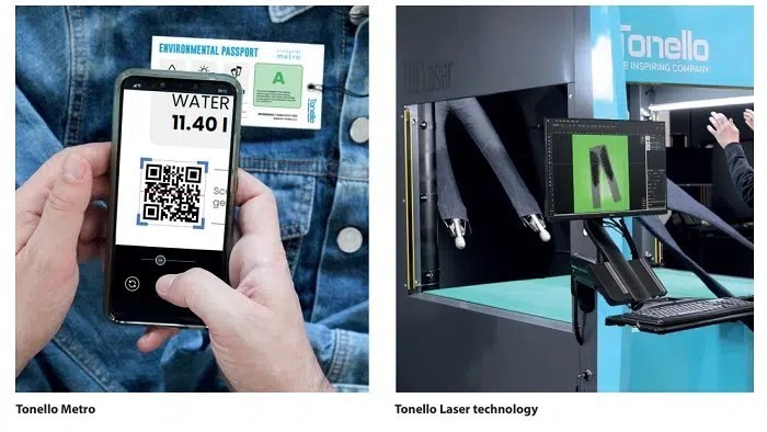 Tonello(通乃路)的“Laundry(R)Evolution”一 体化洗涤系统将 4 种技术集成到一台设备中,以减少对水和能源的消耗,使成衣水洗过程更加灵活和可持续。EGO技术利用水和空气中的臭氧来漂白织物,与传统漂白方法相比,无需使用危险化学品,可减少高达80%的用水量;NoStone®技术无需使用浮石即可实现石洗效果,消除了对浮石供应的需求,从而将与之相关的排放重置为零;UP系统可确保设备内连续、规律的水流,然后将水回收并再循环,减少了染整过程所需的水,从而节省了水和能源,浴比达到较低水平(1∶2),也减少了设备灌装和排水期间的能耗;Core是一个能够产生细雾的自动化系统,其用水量比传统的方法减少高达96%,并集成了OBleach工艺,使用臭氧代替有害化学物质实现真正的漂白效果。