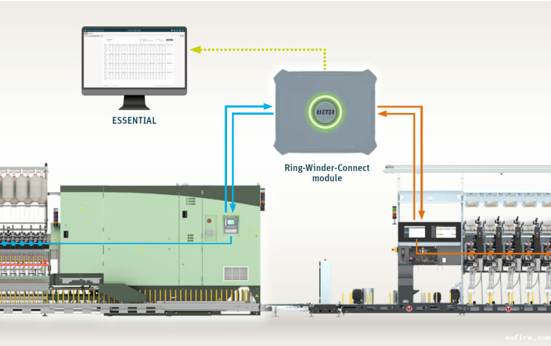 细络交互模块Ring-Winder-Connect可不断优化环锭细纱机G 38与自动络筒机Autoconer X6之间的工艺。ESSENTIALoptimize优化模块可比较和分析来自两台机器的数据,将纱线质量维持在规定范围内。