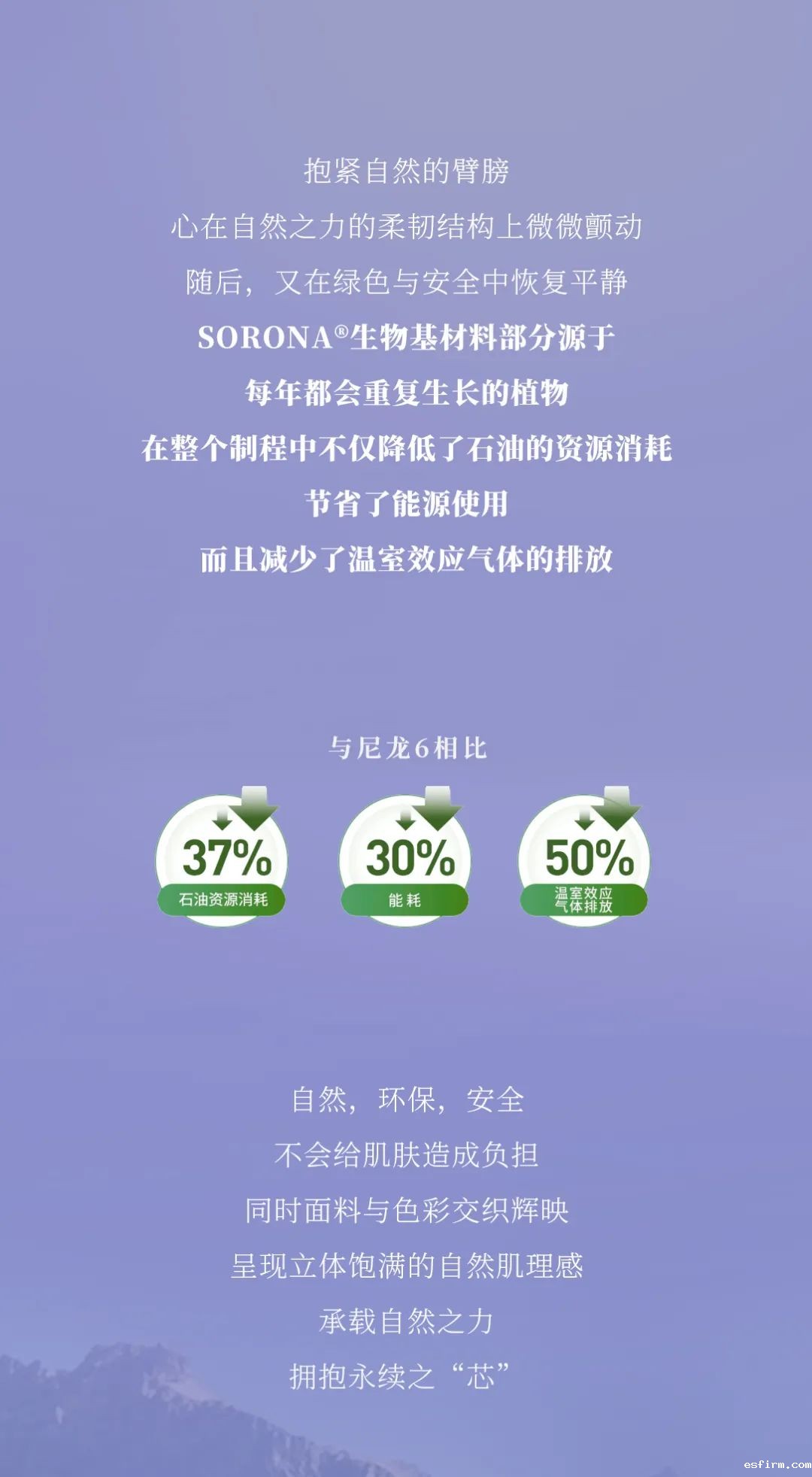 SORONA®是一项突破性的新型生物基聚合物解决方案,其核心原料来自每年可重复生长的植物。SORONA®不仅具有符合潮流趋势的可持续发展和环保主题,而且可以为纤维带来多种功能的优良特性。用SORONA®原料制成的纤维的“多功能性”为面料和服装设计师提供了更大范围的设计自由!