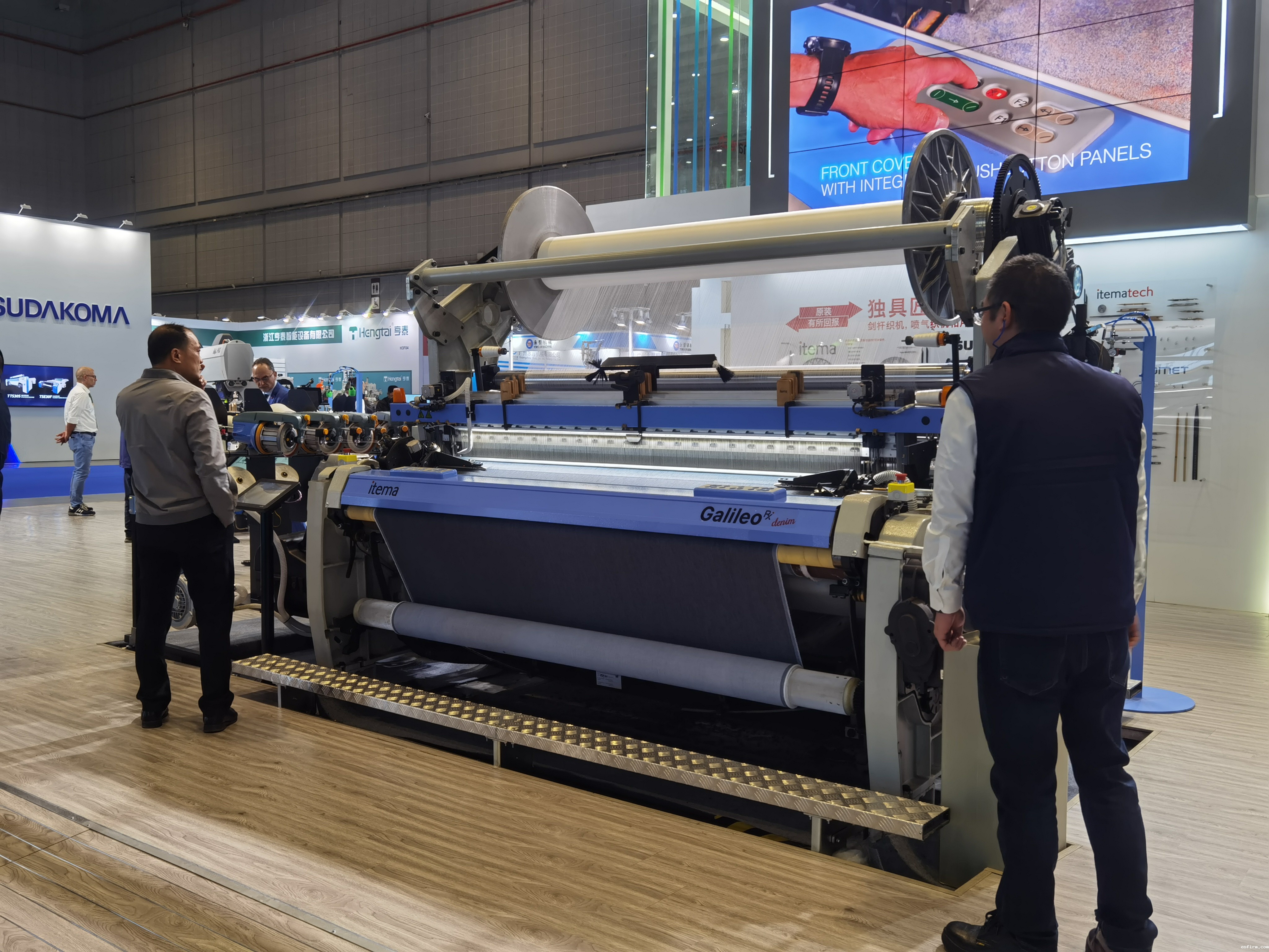 另外有两台意达 GalileoRX剑杆织机,一台用于织造双层弹力牛仔布(幅宽2300mm),配备iSAVER®eco,其是专为织造牛仔布而微调的iSAVER®型号。另一台意达GalileoRX织机织造幅宽为2300 mm,用于织造各类服装用面料。首次亮相ITMA ASIA+CITME 2022的意达GalileoRX剑杆织机于2022年12月推出,基于已在中国市场获得成功的高端剑杆织机意达R9000和R90002的基础上,将最具创新性的织造技术与中国精确制造的独特优势相结合,进一步提升了设备设计和技术,从而满足中国和亚洲市场的多样需求。意达GalileoRX剑杆织机是一个完全开放的平台,可根据织造厂的要求进行配置。
