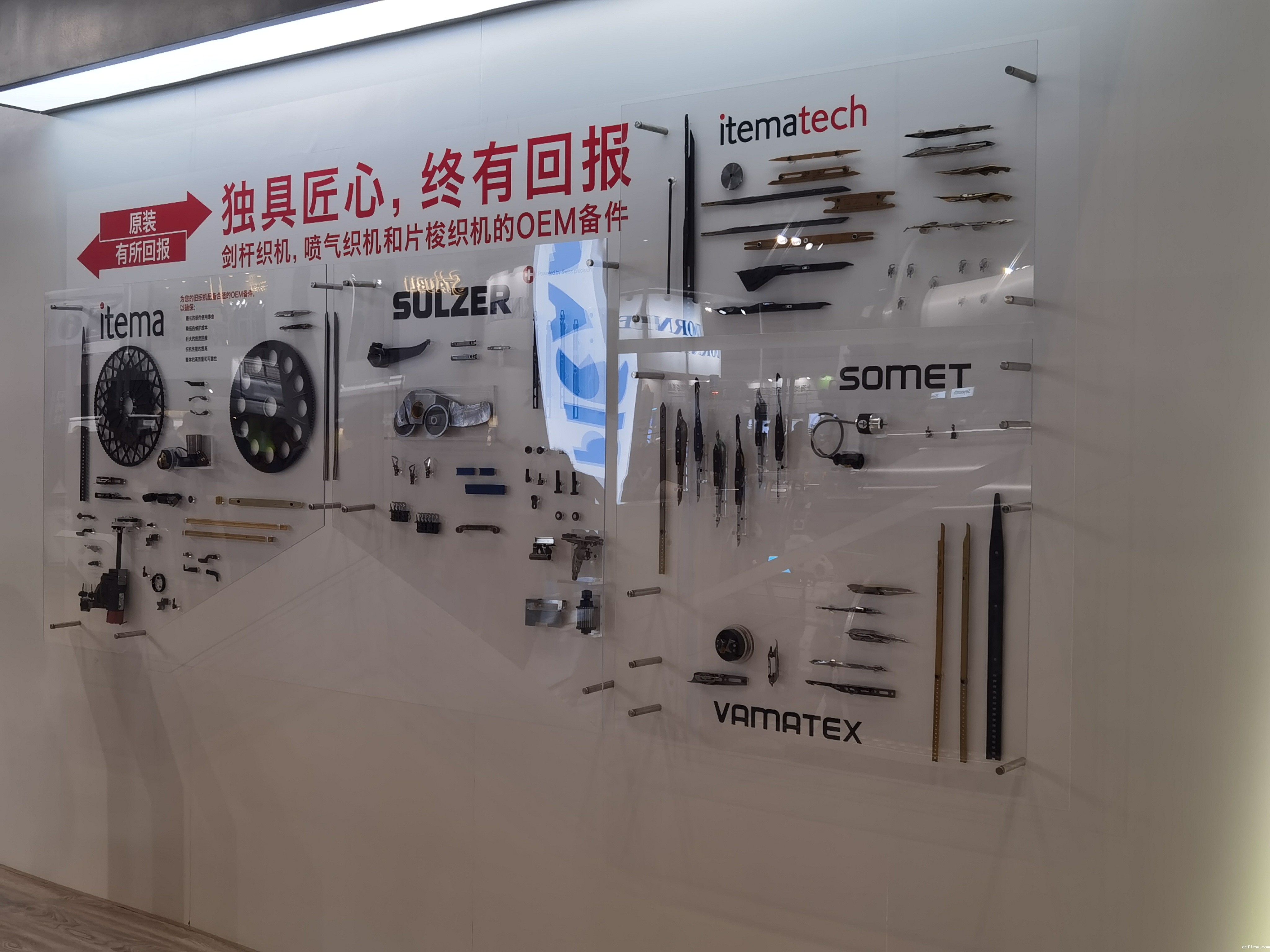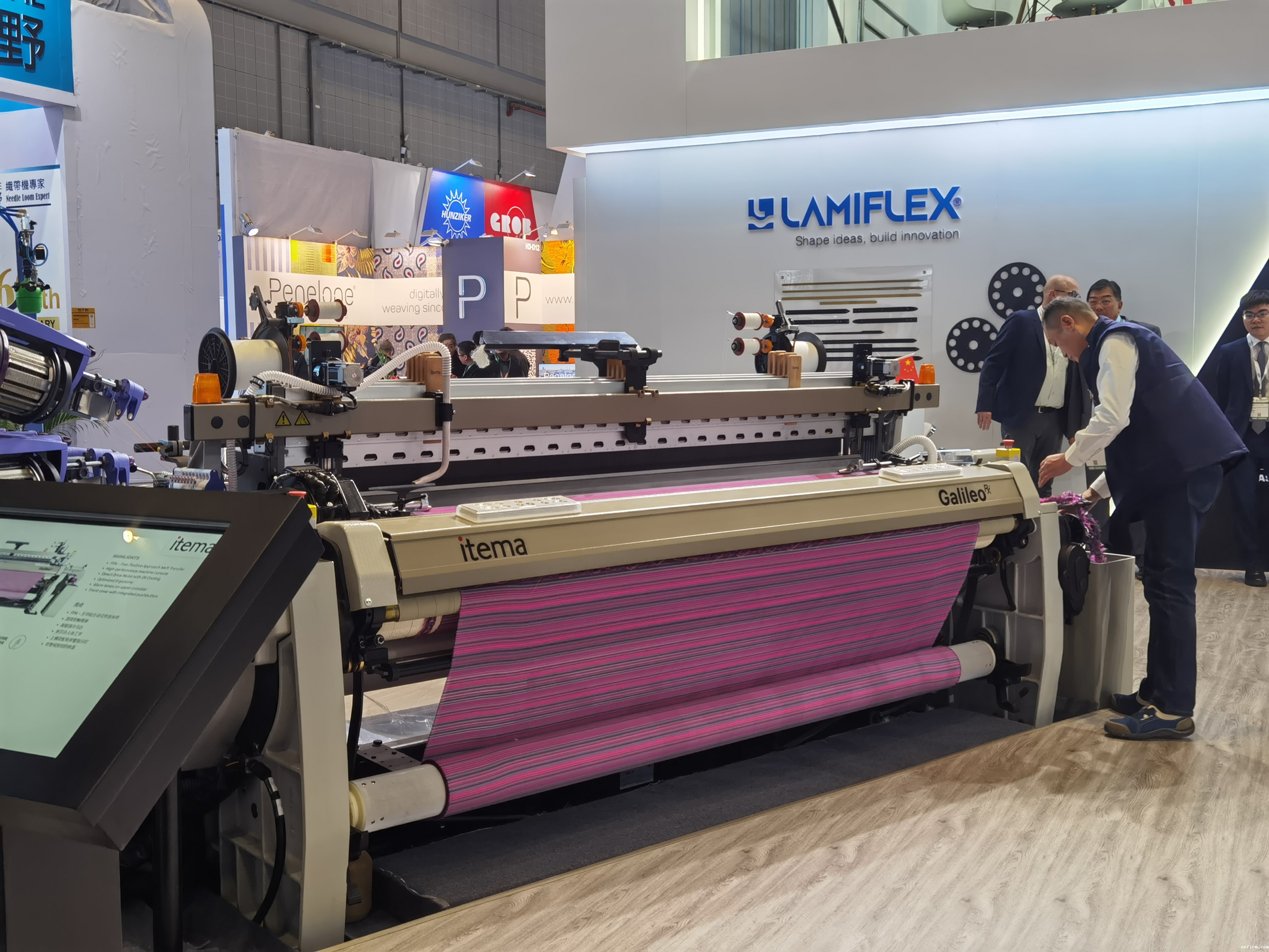 意达织造技术因其卓越的多功能性和纺织工艺,历来被公认为纺织机械生产商的首选。在此次展会上,有多台意达设备在其他展位上展出,分别是:意达R90002剑杆织机(1900mm和2300mm的商标织机)和意达GalileoRX剑杆织机(1900mm的鞋面织机)在湖州现代(巨力宝)展位(3号展馆C02展位)展出。意达R90002剑杆织机(1900mm的鞋面织机)在同翔展位(3号展馆E04展位)展出。纱丽面料在四个不同的合作展位展出,包括在宋和宋展位(3号展馆A23展位)展出的意达GalileoRX剑杆织机(3800mm)、在奇汇展位(3号展馆C23展位)展出的意达GalileoRX剑杆织机(3800mm)、在慧林展位(3号展馆A50展位)展出的意达GalileoRX剑杆织机(3800mm)、在佳宝展位(3号展馆D22展位)展出的意达R90002剑杆织机(3800mm)。意达GalileoRX剑杆织机(3400mm,织造服装面料)在五木展位(3号展馆D28展位)展出。意达GalileoRX剑杆织机(2400mm,织造商标面料)在俪莱展位(3号展馆A28展位)展出。