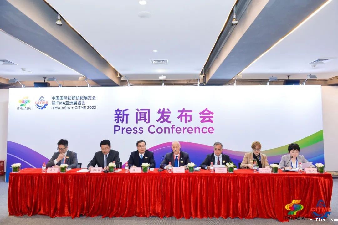 下午,国际纺织机械展新闻发布会在展会现场召开。中国纺织机械协会会长、北京泰格斯特国际展览展示有限公司董事长顾平,中国国际贸易促进委员会纺织行业分会常务副会长、北京泰格斯特国际展览展示有限公司副董事长兼总经理梁鹏程,中国国际展览中心集团有限公司副总裁马力,欧洲纺织机械制造商委员会主席Ernesto Maurer,意大利纺机协会服务有限公司首席执行官Federico Pellegata,欧洲纺织机械制造商委员会秘书长Cornelia Buchwalder出席本次发布会。会议由梁鹏程主持。