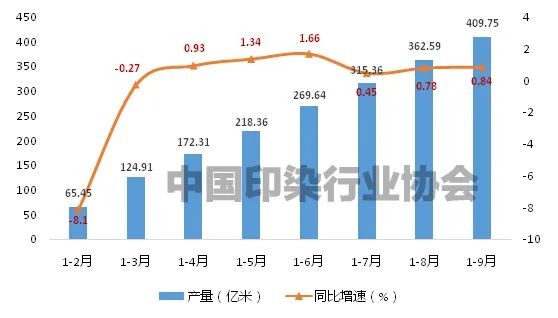 2023年前三季度印染行业规模以上企业印染布产量及增速变化情况