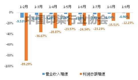 2023年前三季度印染行业规模以上企业营业收入和利润总额增速情况