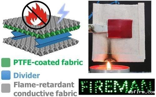 织物基摩擦纳米发电机被认为是可穿戴电子产品的重要解决方案,但是绝大多数织物都不具有阻燃性,阻碍了织物基摩擦纳米发电机在火灾场景下的应用。中国科学院北京纳米能源与系统研究所王中林院士团队利用棉织物作为基底,利用层层自组装方法在棉织物上制备阻燃涂层达到阻燃目的。实验证明对于阻燃处理后的棉布具有极好的自熄效果,且热稳定性及在热流下的热释放率等均得到很大的提升。研究人员利用阻燃棉布制备了一个垂直接触分离模式的阻燃织物基摩擦纳米发电机(FT-TENG)。FT-TENG被火焰在不同位置燃烧17次(每次燃烧时间为20 s)后,仍然能够保持49.2 %的输出,且在220 ℃的环境下能够保持34.48 %的输出,说明棉织物基摩擦纳米发电机具备一定的阻燃性。