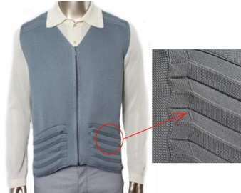 在横编针织运动休闲外套中结合智能可穿戴技术,实现运动健康监测功能。设计思路是保证外套穿着舒适的前提下,增加轻便的智能装备,监测运动情况,提高运动的安全性,满足人们希望显示运动效果、体验科技服装、追求时尚的多元化需求。比如在户外跑步、登山、骑行时穿着的智能外套,可以拥有监测运动情况、提示燃脂心率、指导运动姿态、导航定位、通讯、移动支付等多功能于一体的运动外套。未来智能化运动休闲外套还有很多创新和可优化的空间需要去深入探索实现。