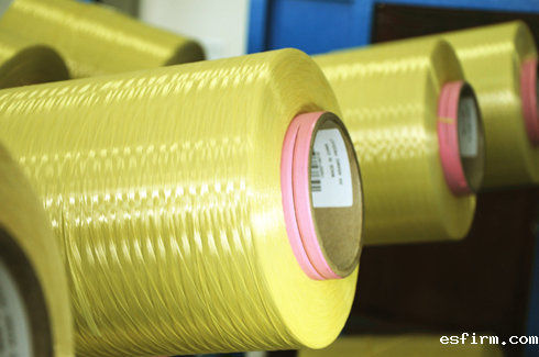 常用的芳纶种类分为对位芳纶(PPTA)和间位芳纶(PMIA),对位芳纶具有高强度、高模量、密度小、耐剪切等性能,其强度是钢丝的5~6倍,模量为钢丝或玻璃纤维的2~3倍,韧性是钢丝的2倍,而重量仅为钢丝的1/5左右。许多国家军警的防弹衣、防弹头盔、防刺防割服、排爆服等均大量采用对位芳纶。在国际某些高端户外品牌的鞋材中,也开始应用芳纶短纤和其他纤维混纺材料。