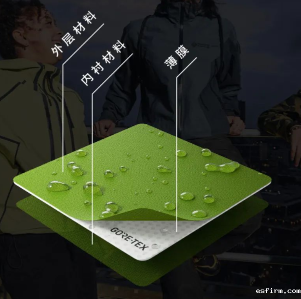 1962年,美国人GORE率先研制出一种具有微孔结构的PTFE膜,并在1976年采用层压复合技术成功将该薄膜应用于纺织领域,赋予产品防水、透湿、防风、保暖等功能。PTFE膜在制造过程通常会涉及全氟辛酸(PFOA)和全氟辛烷磺酸(PFOS)两种具有高生物积累、环境持久性和长距离迁移的物质,对环境会产生不利影响。美国GORE-TEX®品牌则于2021年推出了新型膨体聚乙烯薄膜(ePE),其不含PFC(全氟化合物),可进一步减少对环境的影响;与聚氨酯相结合,可形成持久防水、持久防风、高度透气的薄膜。