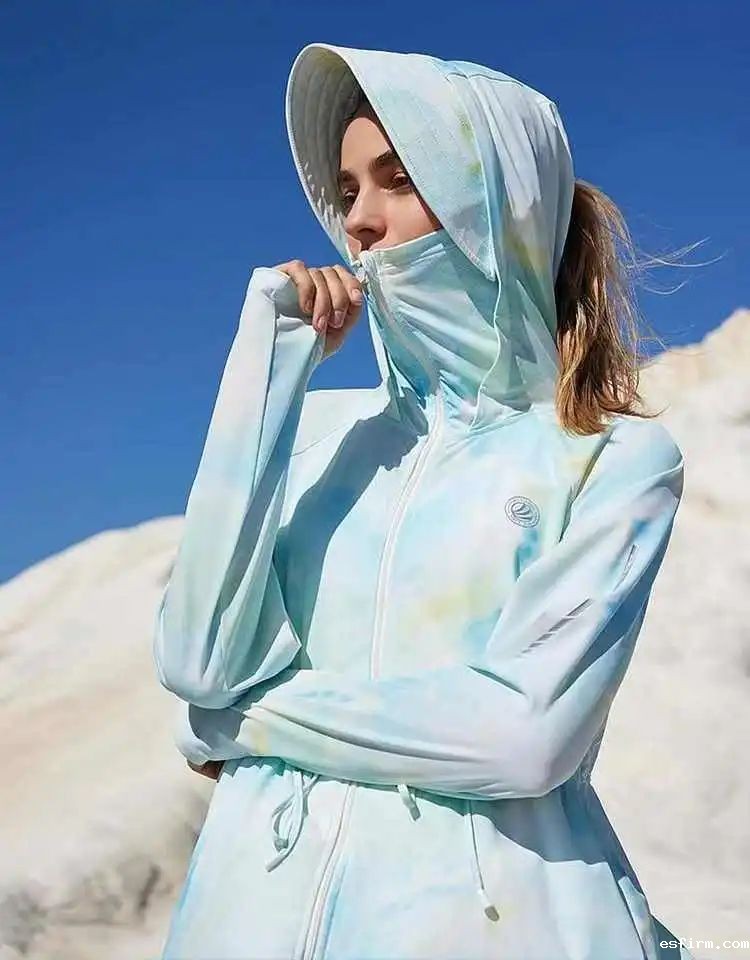 “骄阳2.0”防晒服创新采用渐变工艺,使每件色彩都与众不同。产品采用进口机器及特殊的工艺织造,全消光锦纶长丝采用开口组织的织造方式,氨纶弹性纤维纱线采用闭口组织的织造方式,均采用满穿的方式进行编织且形成的组织结构方向相同,不仅弹性高,还具有优异的防紫外线以及接触凉感性能,实现原纱防晒,经检测3次水洗后UPF值仍达到1020。产品设计上可拆卸大帽檐在户外遮挡强光同时又不阻碍视线;袖口指洞设计贴合手背不怕晒,一体式口罩至眼睑,呵护面部肌肤,防止晒伤老化。从设计到生产加工过程减少污染排放,设计理念环保,是经过伟德app官方正版下载地址社会责任办公室进行碳足迹测算的全行业第一款防晒服,实现了节能减排。