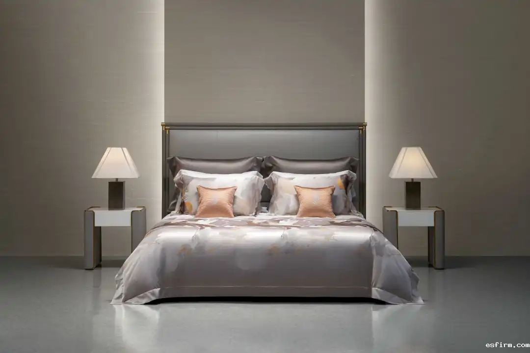 “鸿图之志”桑蚕丝色织提花床品套件的设计灵感来源于“笔歌墨舞”,用笔舒歌,用墨舞蹈,墨舞演绎了中华民族艺术的神韵之美,透过设计图形仿佛感受到舞者时而似飞腾狂草、时而刚柔并进,塑造出一种古雅、端庄的空间感和韵律美。选用100%桑蚕丝为原材料,采用13种经纬交织组织设计,运用到三重纬加四重纬的组织设计技术,可在提花织物上突显颜色的多色多样变化,形成各式各样局部起花的花纹。产品通过线条的变化组合、虚实结合构造空间,墨与自然浑然一体中达到含蓄蕴藉、言有尽而意无穷的艺术境界,营造了一个恬静、雅致、高远的意境。此外,与市场同类产品的色彩偏弱对比,该产品创新的使用墨韵熟褐色,将墨分五色表现的淋漓尽致。