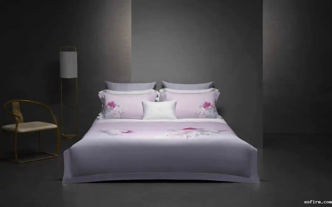 “芳华锦时”全棉手推绣床品套件采用50支全棉纱与绣花线,采用独版数码印花加手推绣刺绣工艺,印花部分以刺绣为蓝图,数码打印灵动再现刺绣丝线的神韵,丝缕毕现,栩栩如生,花朵叶脉层次丰富,充满生机。产品以牡丹为主花型,整个作品温雅恬润,华贵雍容。借鉴姚绣作品的原稿,在整体结构上,借鉴中式园林建筑中月洞门的设计结构,寓意团圆美满。同时运用粉色与灰色渐变的撞色,增加了画面的层次感和时尚感,在其月牙形弧度上,牡丹花、太湖石若隐若现地呈现其上。整体画面意境优美,色彩雅致。运用鲜艳的丝线和精妙的手推绣艺术打造出牡丹盛开的美景,不仅华美动人,给人以良好的视觉享受,更蕴含了富有和高贵的寓意,以及对幸福生活的美好祝福。