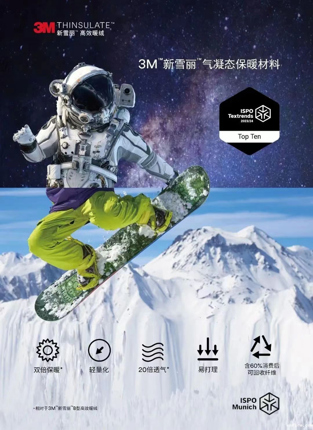 3M™新雪丽™自1978年起就在全球享有盛誉,凭借其黄金三角保暖结构,即导热率低、结构蓬松以及屏蔽人体辐射。实现优异的保暖性能,在防寒产品上逐渐取代了传统保暖材料,并广泛被世界各大知名品牌运用。而现在,随着全新3M™新雪丽™暖翼科技材料的推出,3M™新雪丽™进一步巩固了其在保暖领域的地位。