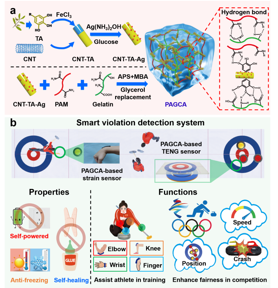 相关工作以“Self-powered, self-healing, and anti-freezing triboelectric sensors for violation detection in sport events”为题发表在Nano Energy上。