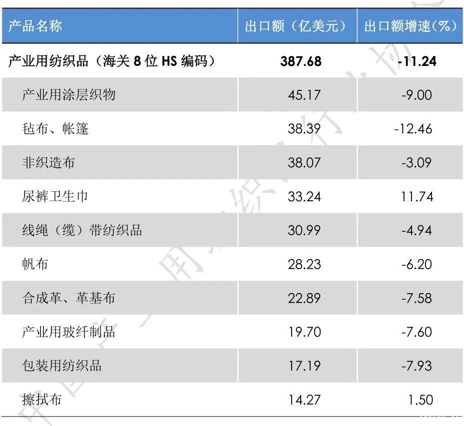 2023年1-12月产业用纺织品行业及主要产品出口情况