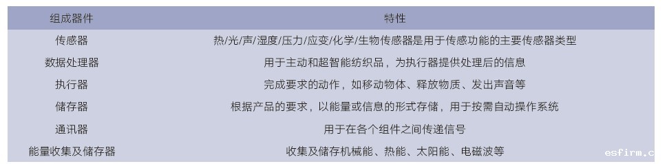 表 1 智能纺织品的组成及特性