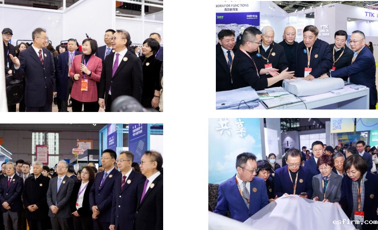 李陵申等领导一行先后走访了美国棉花协会、高阳纺织、南通家纺、沉浸式睡眠空间、柳桥集团、震泽·中国丝绸名镇等集群及企业展位。高阳纺织集群及企业的负责人介绍到,2023年高阳企业不仅积极发力线上渠道,实现了销售额的快速攀升,还通过从生产毛巾向床品、面料等转型的方式,实现了产能的有效转化。在南通家纺展团,二代掌门人、CASUCA展位负责人介绍到,年轻人喜爱猫狗等宠物,却饱受动物毛发粘连困扰,为此企业开发了不沾猫毛的四件套及睡衣等产品。精准抓住年轻人需求痛点是二代接班为企业带来的新活力。在江苏奥度利康展位,企业推出了无螨无菌型床垫和床笠等产品,该展位负责人表示,该企业的多层纳米结构可实现表面催化效应广谱抗菌杀菌性、海绵态纳米微孔具有实现天然功能分子的缓慢释放作用。领导一行对家纺企业的产能转化、市场拓展、科技创新等行为表示肯定,并鼓励企业再接再厉,积极推动家纺行业的高质量发展。