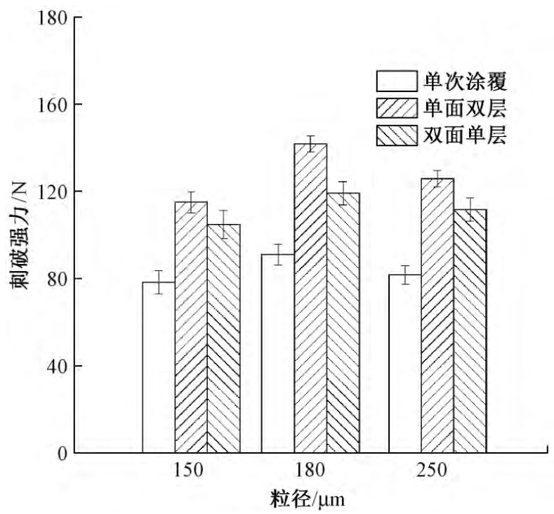 部分研究尝试将硬质粒子如碳化硅(SiC)、二氧化硅(SiO2)等涂覆于织物表面,增加材料对刀具的摩擦和阻力,耗散刀具的冲击能量。王新厚等将不同粒径的SiC硬质颗粒分别通过单面双层和双面单层的方式涂覆在涤纶平纹布表面制成柔性防刺材料,并探究了材料的防刺性能。结果表明,粒径为180 μm的SiC粒子采用单面双层涂覆方式形成的复合材料防刺性能较佳。织物表面涂覆硬质粒子能够改善材料抵御刀尖刺入的效果,但是硬质粒子的涂覆增加了材料克重,同时降低了材料柔性。