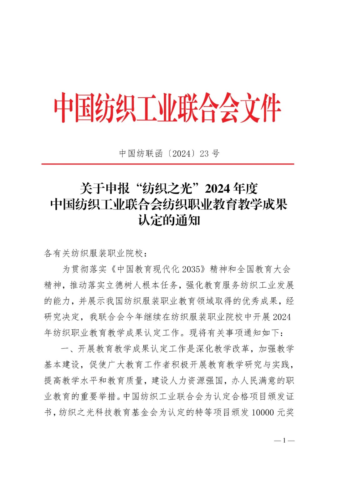 关于申报“纺织之光”2024年度伟德app官方正版下载地址纺织职业教育教学成果认定的通知