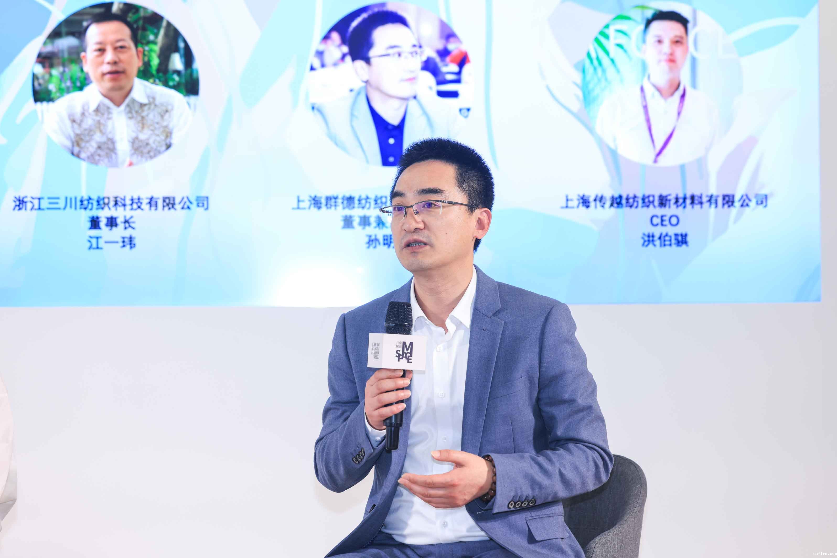 而在29日闭幕的2024秋冬MODE上海服装服饰展上,COOL-FRESH®也与合作伙伴 SORONA®,联合其他面料同仁,共同搭建充满时尚性、创造性与艺术性的沉浸式主题展陈,以“从植物到服装的神奇之旅”为脉络,带领观众领略自然创造的无限可能。并通过“Remake循环工坊”活动的参与,讲述面料重生与再造的故事的同时,进一步拓宽COOL-FRESH®的可持续践行维度。上海群德纺织科技有限公司董事兼总经理孙明亮也以受邀嘉宾的身份出席MODE上海服装服饰展“M SPACE共创聚谈:SORONA®自然创造可能”主题论坛,就COOL-FRESH®与SORONA®生物基材料的合作契机作了阐述。