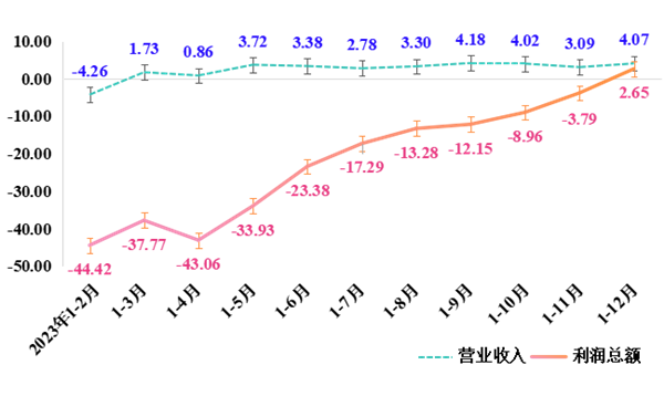图1 2023年长丝织造行业(规上)营业收入、利润总额同比增速(%)