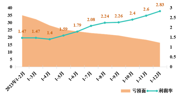 图2 2023年长丝织造行业(规上)利润率、亏损面变化情况(%)
