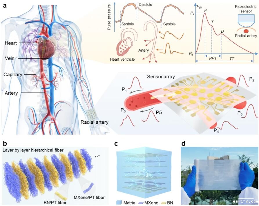 图1. 层次化压电复合材料心血管监测传感器的设计理念