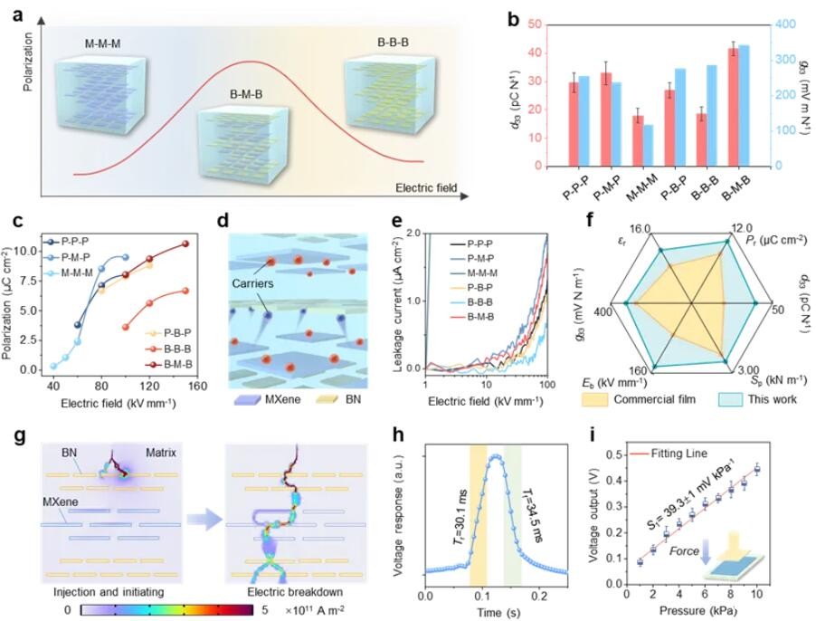 图2. 层次化结构压电复合材料压电增强机理探索及器件性能表征