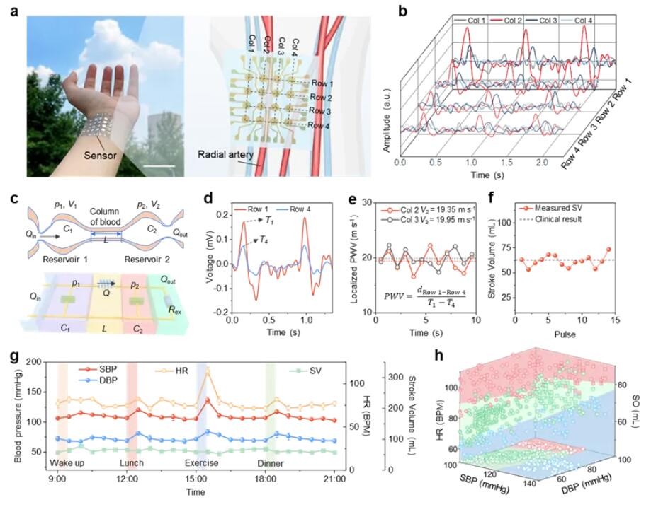 图4. 压电传感阵列器件用于全天血流动力学监测