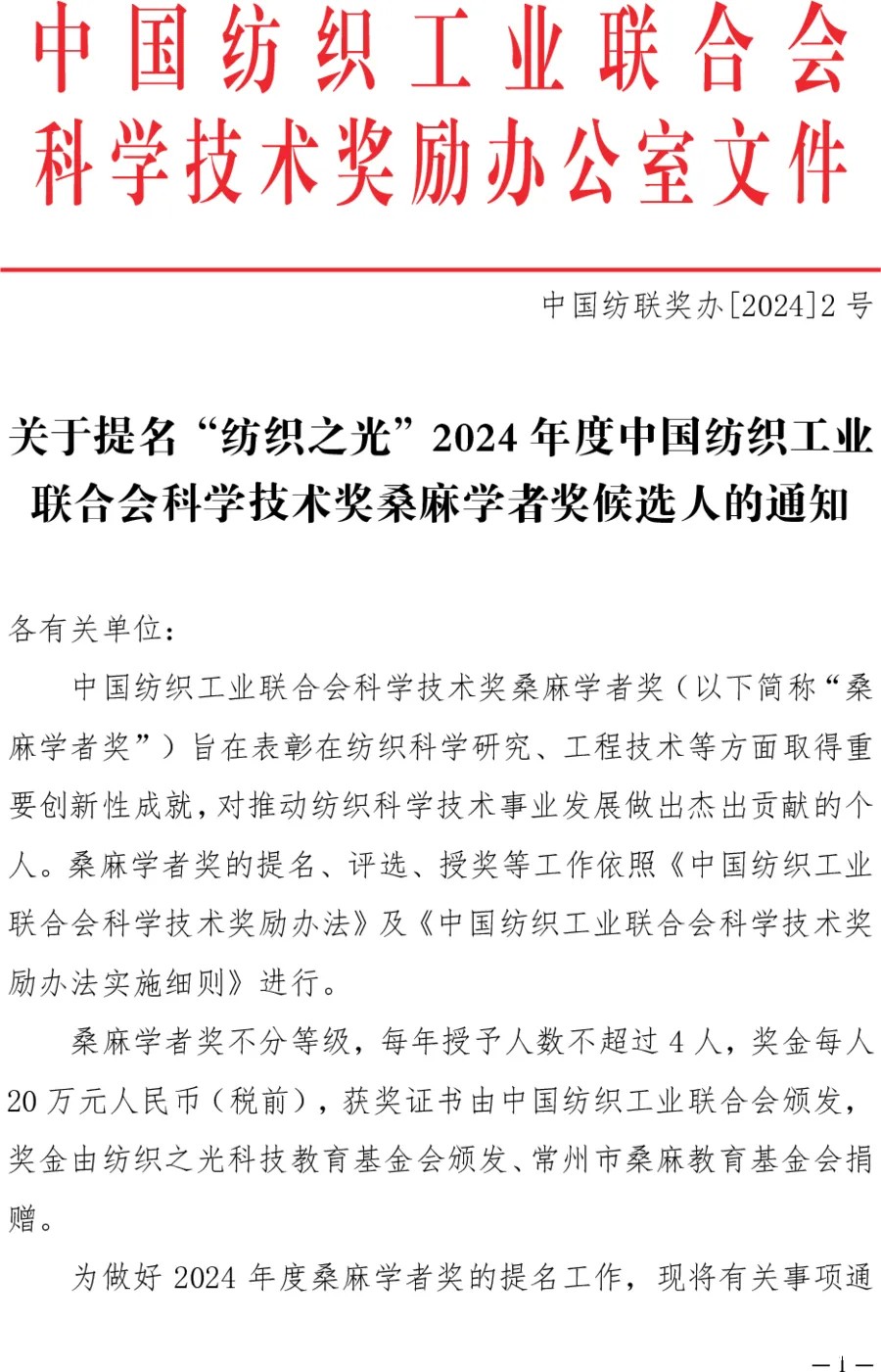 伟德app官方正版下载地址(以下简称“中国纺联”)科学技术奖励办公室于近日启动2024年度桑麻学者奖的提名工作。