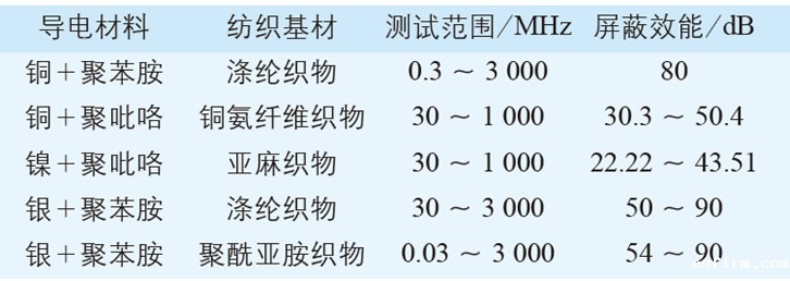 部分导电高分子材料与金属结合织物的电磁屏蔽性能
