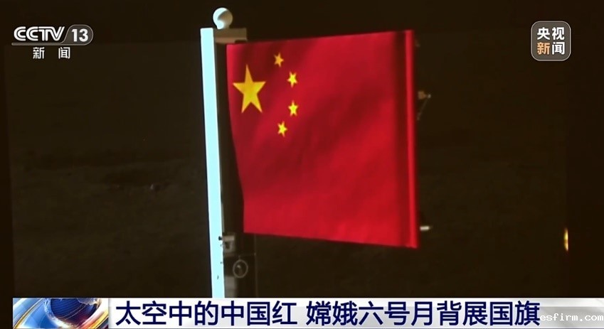 据央视新闻报道,6月3日,月球表面取样完成后,嫦娥六号着陆器携带的一面由玄武岩纤维制成的“石头版”五星红旗在月球背面成功展开。这是中国首次在月球背面独立动态展示国旗,也是继2020年12月3日嫦娥五号“织物版”五星红旗在月球成功展示后,中国探测器在月球上再次打上“中国标识”。