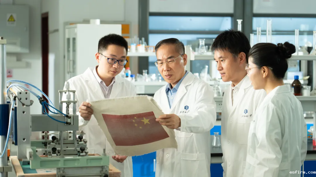 嫦娥六号月面国旗展示系统由中国航天三江集团联合武汉纺织大学等单位共同研制。针对此次任务中高低温交变、高真空及强紫外辐射等极端环境要求,武汉纺织大学纺织新材料与先进加工技术国家重点实验室徐卫林院士月面国旗团队选用玄武岩材料,联合湖北汇尔杰玄武岩纤维有限公司、安徽华茂集团,历时近4年,攻克了玄武岩超细纤维纺丝、纺纱、织造及色彩构建等诸多国际难题,首次成功研制出无温控保护、独立动态展示的“石头版”高品质织物国旗。