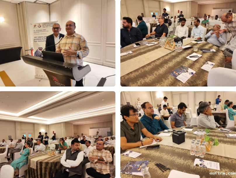 中国国际贸易促进委员会纺织行业分会副秘书长、北京泰格斯特国际展览展示有限公司副总经理沈桢为本次海外观众推广会致开场辞。沈桢介绍到,2024国际纺织机械展将汇集来自全球的1650余家优秀纺机制造商齐聚国家会展中心(上海),展示全球纺机的技术进步和创新成果。本届展会除了展示纺纱、织造、针织、印染、服装加工、刺绣、无纺布等纺织机械设备外,首次设立纺织工业用染料与化学品、印花用墨水专区,期待为印度专业观众带来更多、更好的解决方案。他提到,中国和印度都是纺织品和服装的制造、出口大国,纺织业在推动两国经济增长和民生就业中发挥着重要的作用。近年来,两国纺织业界在技术交流、市场拓展及投资领域取得了丰硕成果。希望在国际纺织机械展平台的推动下,两国业界同仁能够开展更多互利合作,实现行业高质量发展。
