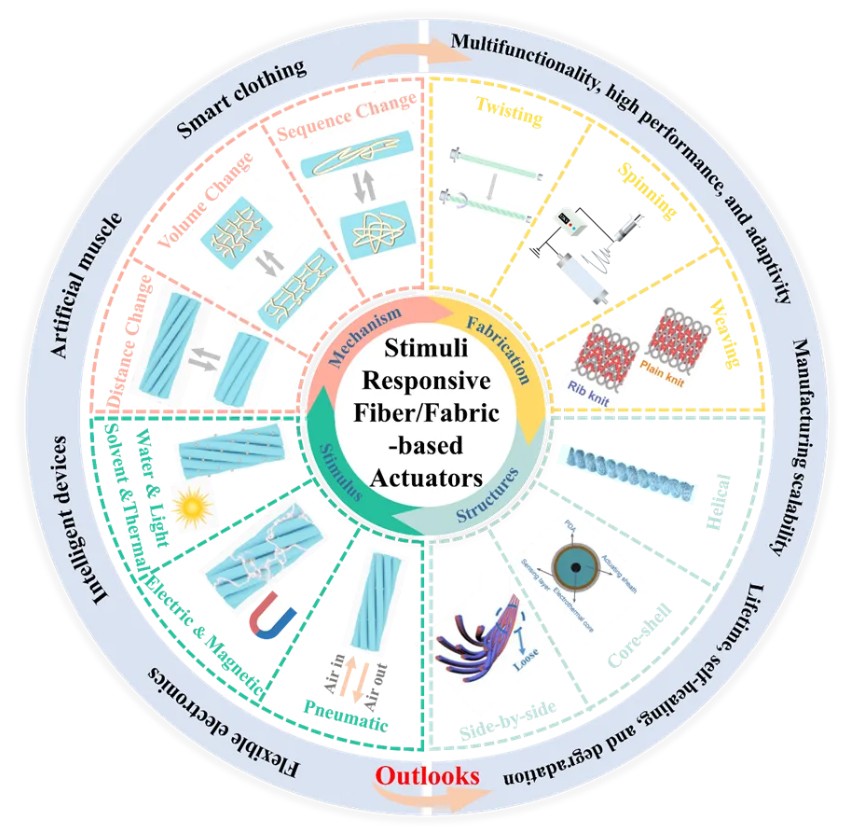 近年来,具有自适应、可重构和多功能特性的仿生软执行器在智能软体机器人应用中受到广泛关注。在可穿戴电子产品的推动下,纤维/织物致动器因其独特的机械柔韧性/拉伸性、高自由度变形、与人体兼容的形状因子、以及成熟的工业化制备等特性,受到特别的关注。