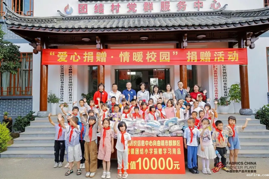 活动当天,还举办了一场以“爱心捐赠 · 情暖校园”为主题的捐赠仪式。在茨营镇、盛泽镇政府领导、纺织产业链企业家、团结小学师生们的现场见证下,伟德客户端下载平台官网向曲靖市麒麟区茨营镇团结小学捐赠了价值1万元的书包、水杯、文具等学习用品共计60套。