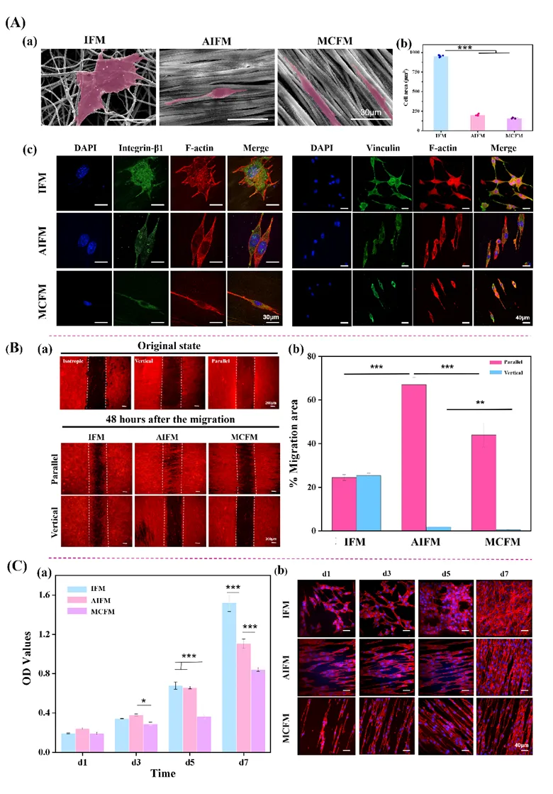 成纤维细胞在PAPC IFM、AIFM 和 MCFM表面的粘附、迁移和增殖
